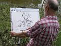 Začali jsme na starém dyjském rameni, pan Vojtek vybíral místa a tvořil na akvarelový papír. Já jsem ho doprovázel s zachytil jsem do volného verše náladu tohoto plenérování a mistra při práci okem objektivu. Mírné slunce a nijak vysoká teplota dne po předchozí noční bouřce byla pro toto celý den jedinečná.