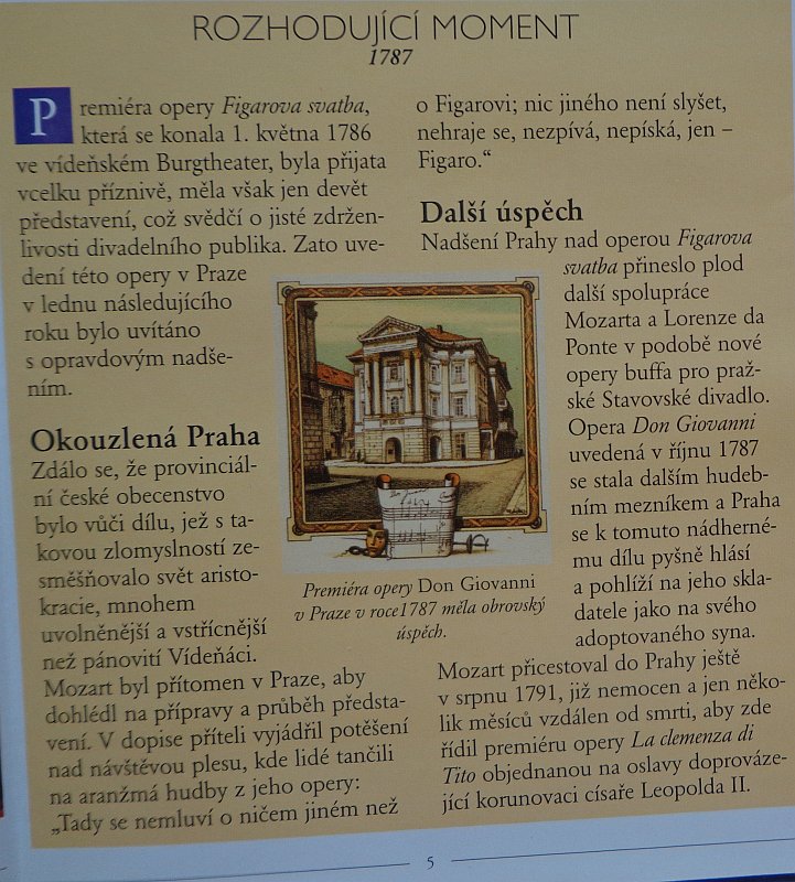 Dne 21. dubna 1783 - tedy před 230 lety - bylo otevřeno Stavovské divadla v Praze, původně Nosticovo. Uvádím je zde proto, že je známé především tím, že v něm vystoupil po svém příjezdu do Prahy Wolfgang Amadeus Mozart, aby zde dirigoval svoji Figarovu svatbu, která nebyla ve Vídni přijata. Pražané ale byli nadšení a Mozart jako dík za srdečné přijetí se kromě onoho výše uvedeného výroku rozhodl pro Prahu složit operu Don Giovanni a opět ji zde sám dirigoval. A právě tím, že tato opera byla ve Stavovském divadle uvedena, se divadlo stalo známým v celém tehdejším kulturním světě A v současné době je jediným dosud existujícím divadlem, kde Mozart působil.