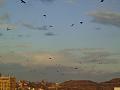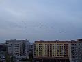 Při přeletu nad domy se cestou zastaví na stromech, mimochodem i na těch pod mými okny, jejichž fotografii jsem vložila do předcházejícího článku, na anténách vysokých domů i na ostatních stromech v okolí, a vypadá to potom tak, že jsou stromy jimi obsypány tak, jako když jsou v době mimořádné úrody ovocné stromy obsypány ovocem. Vždy chvíli posedí a pak se zvednou a letí dál, někteří zůstanou po celý den a pohybují se v blízkém okolí.