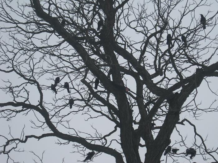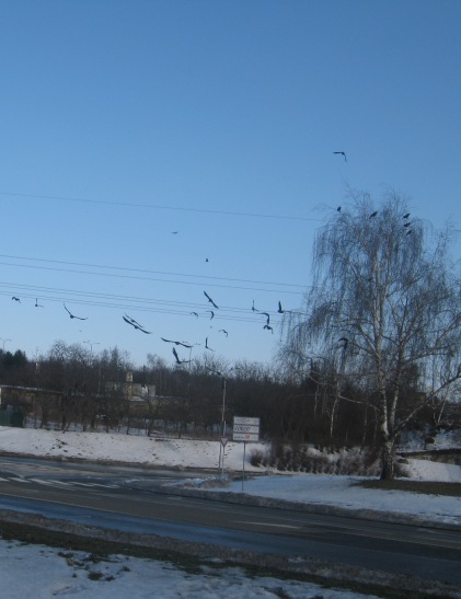 Přituhlo. Vyjasnilo se. Hustota vran stoupla