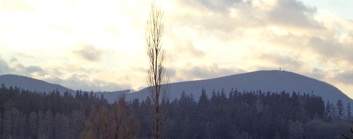 Proč jsem tedy uvedla to datum. V článku Leony s verši pod názvem Byla, je a bude zima bílá? je fotografie, kterou pořídila 12. ledna okolo 16,20 hodin. Je to taková shoda náhod, já jsem v tentýž den a přibližně v tutéž dobu pořídila fotografii, která se mi - trochu si teď fandím - možná také povedla. Je na ní hora Velký Javorník s rozhlednou, v minulém roce byla dokončena její výstavba a byla zpřístupněna veřejnosti. Je to hora na nejzápadnější výspě Beskydského pohoří, vzpomínám si, že kdysi jako prvňačka jsem tam byla na školním výletě.