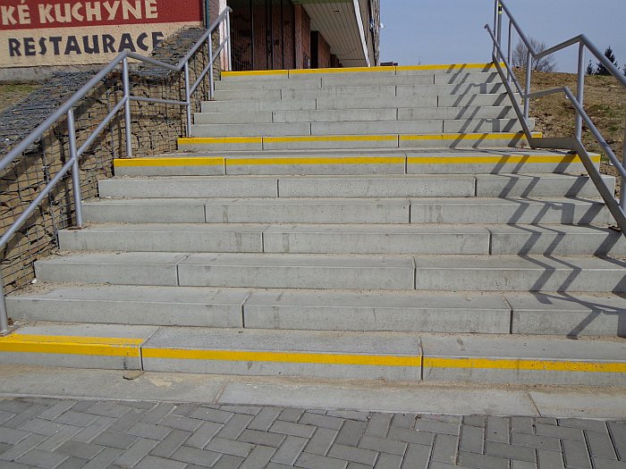 Ona ta bezpečnostní značení na veřejných přechodech, schodech, komunikacích nejsou opravdu zbytečná. Jak jsem zdokumentovala na dvou přiložených fotografiích, žluté označení prvního a posledního schodu, žlutočerné šrafování nejen na silničních retardérech, také zábradlí při výškových rozdílech větších než 50 cm, to jsou předpisy, které mají své opodstatnění a jejich dodržování má svůj význam.