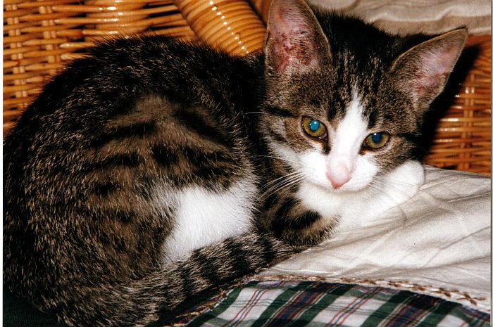 Dne 27. 6. roku 2013 jsem se s maminkou vydala do nedalekého útulku. Byly jsme tam už před pár měsíci, ale to jen na obhlídku. Kočičky tam měli krásné, bohužel některé s vážným handicapem, díky kterému si je nemohl vzít jen tak někdo, kdo jejich potřebám ještě moc dobře nerozumí. Celou cestu jsem přemýšlela nad tím, jakou kočičku si domů vlastně přivedeme. Jakou bude mít barvu? Jaké bude povahy? Bude mě mít ráda, nebo se nás bude bát? To se člověk nikdy dopředu nedozví, což mě trochu děsilo. Uvažovala jsem nejspíš tak hluboce, až jsem si skoro neuvědomila, že stojíme před hlavní, rozsáhlou budovou, kde se zároveň nacházela veterinární klinika. Vešly jsme, a pak už to šlo ráz na ráz. Najednou jsem stále před jednou asi ze třiceti klecí a koukala na malé, hravé, mourované koťátko. Dostalo mě nejen na svoji energickou povahu, ale taky na krásné, modré oči, které z těch větších koťátek mělo jako jediné. Chtěla jsem si ho pohladit a on okamžitě přiběhl, začal mňoukat a otírat se o mříže. Když jsem rukou pohnula, šel za ní a několikrát do mě pacičkami strčil. Okamžitě jsem si byla svým výběrem jistá. Dala jsem šanci i ostatním, ale tohle zlatíčko jsem zkrátka nedokázala opustit. Už tenkrát se mi vryl do srdce i do paměti. Paní, která nám s výběrem pomáhala, neměla nic proti a o chlupatém klubíčku uvnitř klece nám začala s chutí vyprávět. Říkala, že jej lidé našli poraněného na ulici, že měl poraněnou tlapku (nemohl s ní hýbat) a nejspíš jej přejelo, nebo srazilo auto. Také zdůraznila, že napřed nebylo vůbec jasné, jestli mu tu tlapičku vůbec zachrání, musel pravidelně užívat antibiotika a moc tlapku nepřetěžovat. Já jsem však viděla v jeho planoucích očkách bojovnost, rebelství a šibalství. I přes docela vážné zranění se nebál a věřil nám. Paní mi jej dala do náruče a kocourek se ke mně okamžitě přitiskl. Věděla jsem, že je to ten pravý. Maminka zaplatila 400 KČ za pomoc při výběru a zároveň jako drobnou podporu záchranné stanice. Po cestě domů jsme malinkého kocourka pojmenovaly Matýsek. Padala různá jména, ale tohle bylo ze všech nejlepší. Doma se velice rychle zabydlel, byl učenlivý a všechno pochopil hned napoprvé.