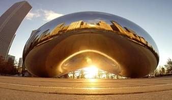 Na volném prostranství, v nejtypičtější části města - jeho centru - se před asi deseti lety objevilo něco, čemu se říká Cloud Gate - v překladu Brána Oblaků či také Brána do nebes. Je to jakési umělecké dílo, které se stalo novodobým symbolem Chicaga. Jeho vznešený název se však neujal, Američané si pro toto zajímavé stotunové monstrum zhotovené z tlusté nerezové oceli vymysleli jednoduše název "fazole", protože tak nějak podobně vypadá. Zrcadlový zaoblený povrch deformuje vše, co se v něm odráží, zejména celé centrum - downtown - Chicaga, takže to známé panorama s mrakodrapy je různě pokroucené. Nikdo v podstatě neví, co má tato "fazole" představovat, ale zkrátka je tam.