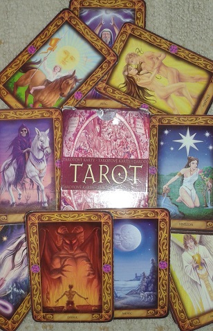Než jsem si koupila Tarotové karty, které si mě samy našly, tak jsem častokrát přemýšlela, jaké si pořídit. Bohužel jsem se v nich nedokázala vyznat a hlavně si vybrat. Neustále jsem brázdila internetové e-shopy, ale bezvýsledně. Bylo jich tam spousta! Od Andělských, Cikánských, Marseillských až po takové, na kterých byly překrásné víly. Takže jsem na nějaký čas Tarotové karty pustila z hlavy. A pak to přišlo! Jednou večer jsem hledala na internetu písničku, už si ani nevzpomínám jakou, a najednou místo té písničky na mě vyskočily překrásně malované karty! Na první pohled mě okouzlily a během několika vteřin jsem si je objednala. Když mi pak přišly, byla jsem z nich naprosto unešená! Nedokázala jsem od nich odtrhnout oči, protože mě přitahovaly jako magnet. Dlouho dobu mi trvalo, než jsem se v nich pomalu začala učit číst. Víc jak rok ležely v šuplíku a až jsem cítila, že je ten správný čas je vytáhnout, udělala jsem to. Pokud si ale myslíte, že si karty vykládám často, tak se mýlíte. Někdy je vytáhnu za půl roku, někdy za rok. Svým kamarádkám je vykládám častěji než sobě. Je to pro nás příjemné zpestření a hlavně se u toho dobře pobavíme. Jestli si z toho vezmou něco zásadního, nechávám na nich. Pravdou ale je, že nejednou jim karty hodně pomohly nebo je varovaly.