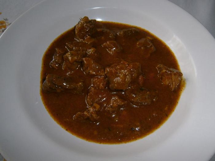 - telecí plíce, srdce a slezina, víno, tymián, cibule, citronová kůra a hřebíčky, vše se dusilo, pokrm se zahustil jíškou