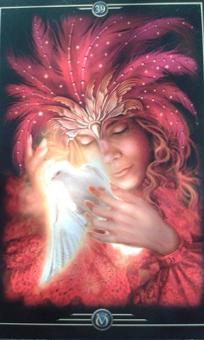 Pro představu - na kartách jsou vyobrazeny šašci, různé masky, mechanická zařízení i pseudoviktoriánské kostýmy a postavy. Spojení těchto věcí ve vás vyvolává pocit estetického cítění a také zvláštní tajemno, které prostupuje celým tělem. Na některých kartách, a toho jsem si všimla až za delší dobu, jsou vyobrazeny některé symboly Tarotu. Nejdříve jsem nechápala spojení, ale postupem času jsem si uvědomila, že tam jsou jen jakýsi „přídavek“ a někdy nemají ani žádný význam. I když ne u každé karty. Nejkrásnější a nejčastěji taženou kartou je pro mě karta s číslem třicet devět. Znamená Útěchu – léčení – péči - Odleť odsud v náručí andělů… Pozvedají tě nad žalostné trosky, z ohlušující prázdnoty tvého veselí, jsi v náruči andělů a kéž zde nalezneš trochu útěchy…