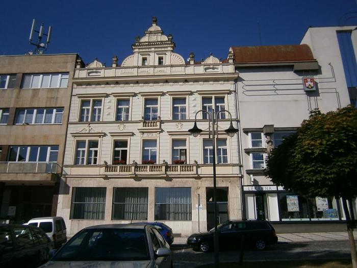 Vysoký dům stojící vedle je bývalá Občanská záložna, první peněžní ústav ve městě. Dvouposchoďová secesní budova byla postavena roku 1905 místním stavitelem Josefem Podařilem. Fasáda je bohatě doplněna štukovou výzdobou. Dříve Občanská záložna vlastnila i sousední dům „U ryby“. Poslední ukázkou měšťanského stavitelství, o které se zmíním, je dům na užší straně náměstí. V jeho nice je umístěna socha Panny Marie s Ježíškem. Jistě stojí za alespoň krátké nahlédnutí, je kouzelná…