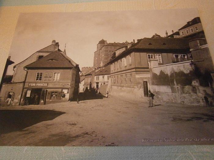 Na křižovatce Nádražní a Ptácké ulice stával, jak si pamatuji, krásný nárožní dům s věžičkou. Za první republiky zde bývalo Donátovo řeznictví a uzenářství. Dům stál přímo pod hradem a musel ustoupit rozšíření a úpravě silnice. Naproti byla malá trafika, kam jsme chodívali pro sobotní noviny, a hned vedle prodejna hodin a klenotů.