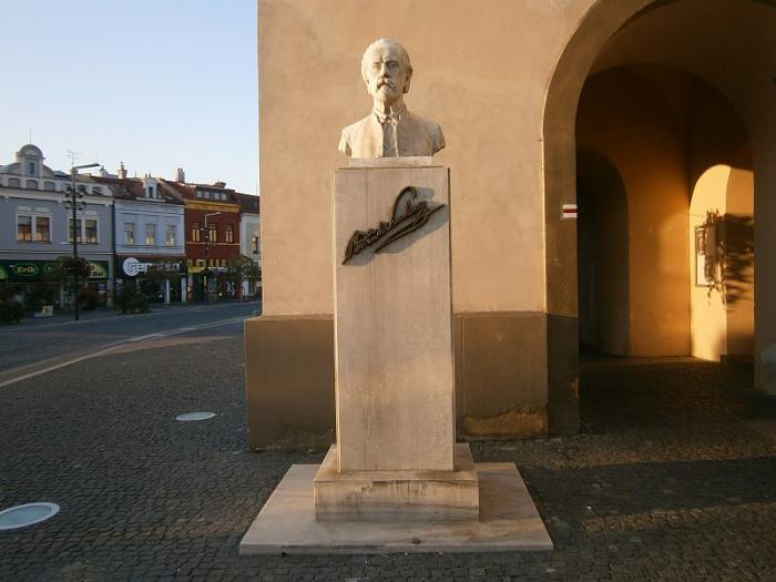 Hrála se tady i premiéra opery B. Smetany Prodaná nevěsta za osobní účasti autora. Byla uvedena sborem Boleslav v listopadu 1879. Smetana se jí zúčastnil se svou dcerou a zetěm, u nichž bydlel v Jabkenicích. Ubytovali se v hotelu U Zlatého věnce a při cestě do budovy radnice na představení je ohrozil rychle jedoucí kočár. Všichni stačili uskočit, pouze skladatel, v té době již neslyšící, neviděl hrozící nebezpečí, ale včas zareagoval jeho zeť Schwarz. Na památku této příhody, která skončila šťastně, byla poblíž místu události, před arciděkanským kostelem, odhalena v roce 1953 busta. Vytvořil ji sochař Josef Bílek z Hořic v Podkrkonoší, na realizaci, platbách i umístění měl největší zásluhu profesor Ferdinand Strejček (o něm vám napíši v dalších dílech).
