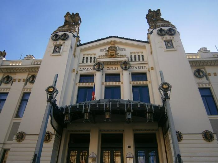 Tolik ke stručné historii mladoboleslavských ochotníků a divadla. Nyní se pojďme podívat, jak budova vypadá. I po různých přestavbách a opravách zůstala v secesním stylu. V průčelí jsou dva mohutné pylony, na nichž stojí dvě sousoší. Vytvořil je pražský sochař Jan Štursa. Vlevo je Probuzení národa, pod ním dvouocasý český lev, vpravo Vítězství umění a lev jednoocasý, kterého má Boleslav ve znaku. Na bocích pylonů jsou štukové letopočty MCMIX. Uprostřed průčelí před štítem je socha sedící múzy Thálie, dílo sochaře J. Vorla. Pod ní je zlatý nápis „Umění – síla života“. Větička vadila nacistům, zakryli ji omítkou. Hlavní vstup do divadla je pod markýzou, jejíž podpůrné sloupy jsou ozdobeny pozlacenými monogramy MB. Vede k němu nájezd a středové schodiště.