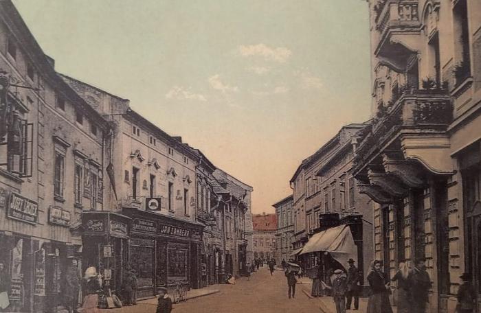 Nyní přeskočíme jeden dům, v němž se relativně nedávno prodávaly nože a nůžky, a zastavíme se u domu číslo 40. Na mnoha starých fotografií je zachycen s kloboučnickou firmou Jana a později Oskara Žambery. Obchod s tímto sortimentem byl otevřen v srpnu 1899. Prodávaly se zde klobouky a čepice běžné, ale i “speciální”. Na reklamním letáku inzeroval majitel i vlastní dílny na opravy.