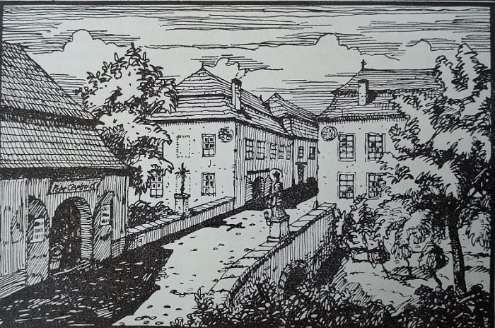 Poslední dům, stojícím před příkopem, stál v mírné zlomu ulice. Patřil rodině Tuřičově, v polovině 19. století Sýkorově, která provozovala krupařství.