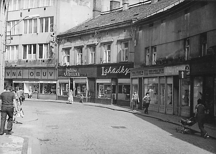 Mnozí pamatují zdejší cukrárnu Oldřicha Splídka, vynikajícího odborníka, jenž vyučoval na cukrářské škole pokračující. Jeho sladkosti zdobily i svatební tabule. V roce 1950 prodal pan Splídek provozovnu panu Fluskovi, také cukráři, ale ten své řemeslo zde neprovozoval. V socialistické éře zde sídlila prodejna Drutěvy.