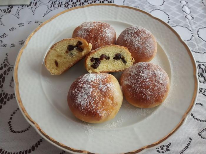 Umícháme kvásek a počkáme až vykyne. Pak smícháme všechny suroviny, vypracujeme běžné kynuté těsto, přikryjeme a obložíme polštáři. Když těsto zvětší svůj objem, rozdělíme ho na stejné části, zploštíme na placičky, naplníme rozinkami, spojíme k sobě a ukoulíme bochánek. Potřeme vejcem, necháme ještě chvíli kynout a upečeme.