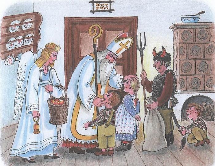 Sv. Mikuláš je nejznámější postavou adventní doby. I dnes obchází převlečený za biskupa domy s rodinami malých dětí, pokud je o to požádán. Tradičně ho doprovází usmívající se anděl a remcající čert.