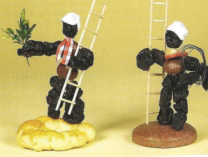 Podobně byl vytvořen i kominík či jiná postavička. Stávala na kousku perníku nebo jiného pečiva, sušené švestky byly navlečeny na drátek nebo špejli, doplňky z papíru nebo ústřižku látky, žebřík ze slepených kousků špejlí, štětka z drátků na konci svázaných.
