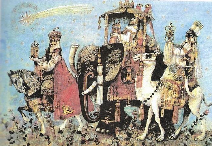 Za betlémskou hvězdou spěchají vznešení mudrci či mágové z východu, jak byli nazýváni zpočátku, patrně to byli vzdělanci z arabského světa, kteří uměli pozorovat nebeské úkazy, nebo kněží a astrologové Mithrova kultu. Až v 6. století se jim začalo říkat králové. Mudrci neměli jména, udával se počet od 2 do 12. Až ve 3. století se ustálil na třech, ale jen podle počtu darů.